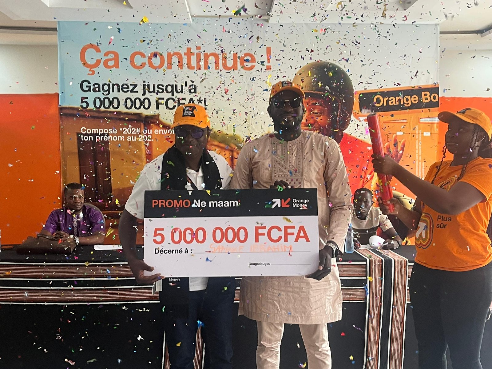 Le vendredi 25 juillet 2025, Orange Money Burkina a officiellement clôturé son jeu de fidélisation dénommée « Grande Promo Ne Maam » avec la  remise du gros lot de 5 millions de francs CFA à Ibrahim Samaké. Cette cérémonie a marqué l’apogée d’une promotion qui s’est déroulée du 20 mai au 18 juillet dernier, visant à récompenser la fidélité de ses clients.