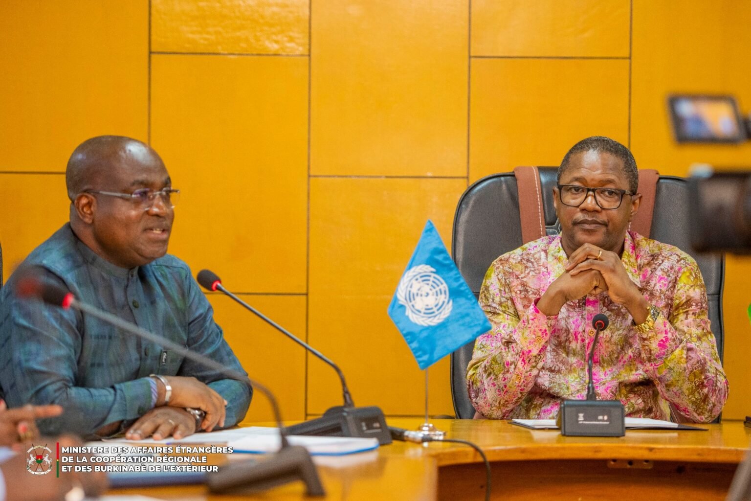 Le ministre des Affaires étrangères, de la Coopération régionale et des Burkinabè de l’extérieur, accompagné de ses proches collaborateurs, a eu une séance de travail, dans l’après-midi du lundi 15 septembre 2025, avec l’équipe du Système des Nations unies au Burkina Faso, conduite par le Coordonnateur résident par intérim, monsieur Maurice Azonnankpo.