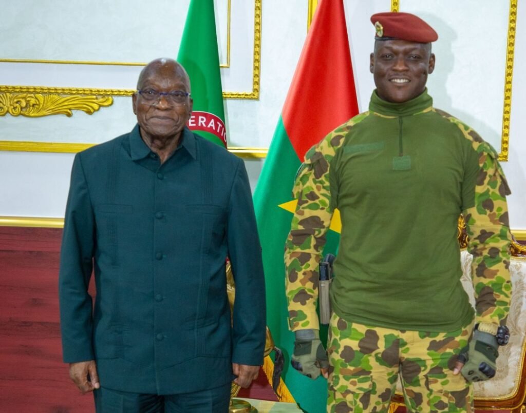 Le Président du Faso, Chef de l’État, le Capitaine Ibrahim TRAORÉ, a accordé une audience, ce lundi au palais de Koulouba, à l’ancien Président sud-africain Jacob ZUMA. Accompagné par le Ministre burkinabè des Affaires étrangères, Karamoko Jean Marie TRAORÉ, l’ancien compagnon de lutte de Nelson MANDELA dit être venu parler de la libération du continent africain.