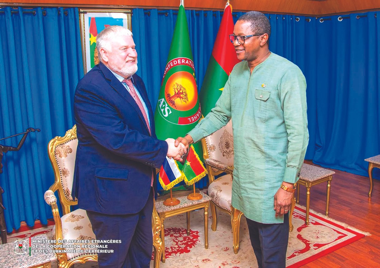 Le ministre des Affaires étrangères, de la Coopération régionale et des Burkinabè de l’extérieur, Karamoko Jean Marie Traoré, a reçu en audience, ce lundi 1er septembre 2025, Igor Martynov, ambassadeur de la Fédération de Russie au Burkina Faso.