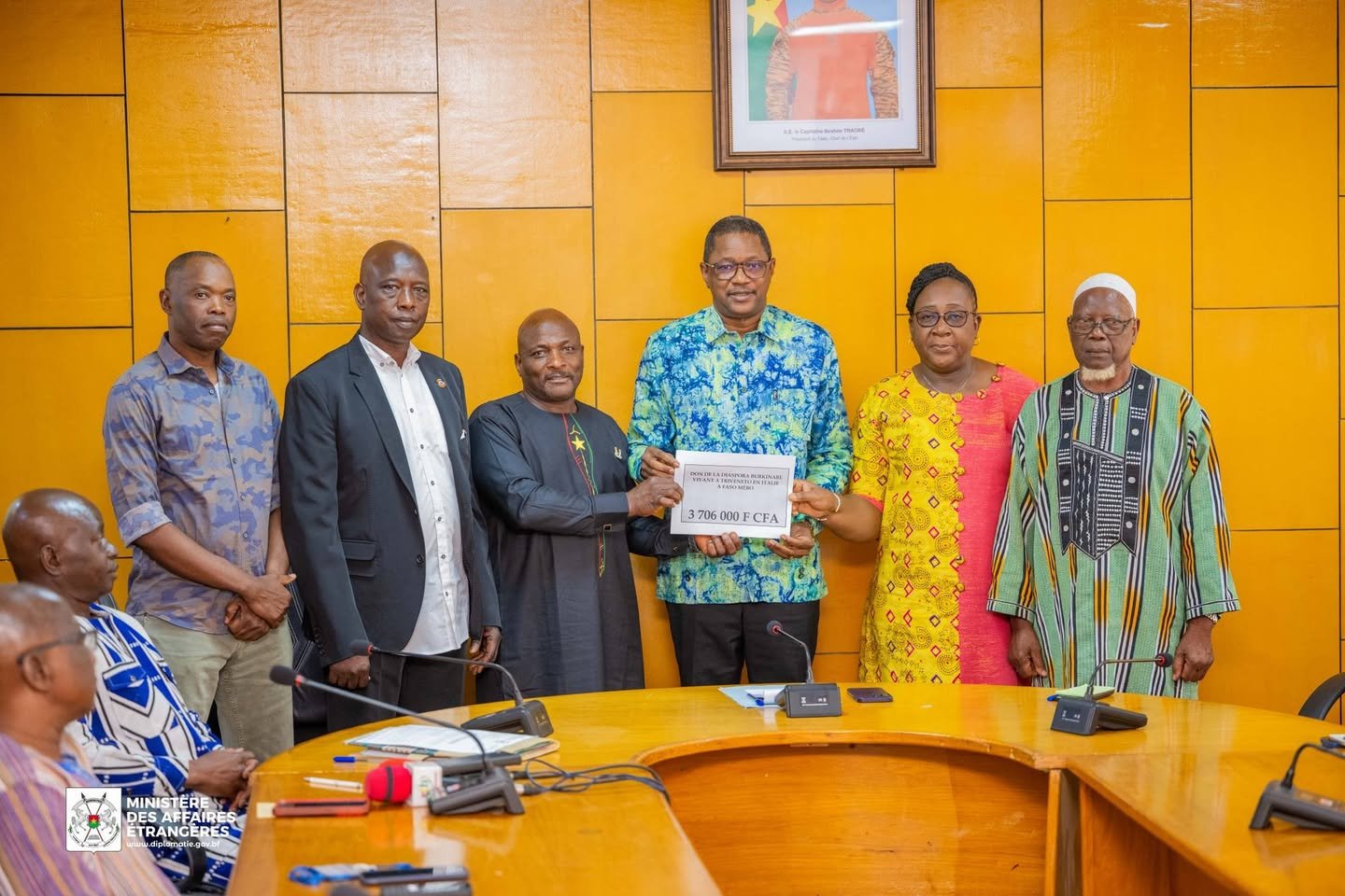 Le ministre des Affaires étrangères, avec à ses côtés l’ensemble de ses proches collaborateurs, a présidé dans l’après-midi du mercredi 14 janvier 2026, une cérémonie de remise de quittances de deux délégations de la diaspora burkinabè, vivant dans la juridiction de l’ambassade de Nairobi et dans la région de Triveneto en Italie.