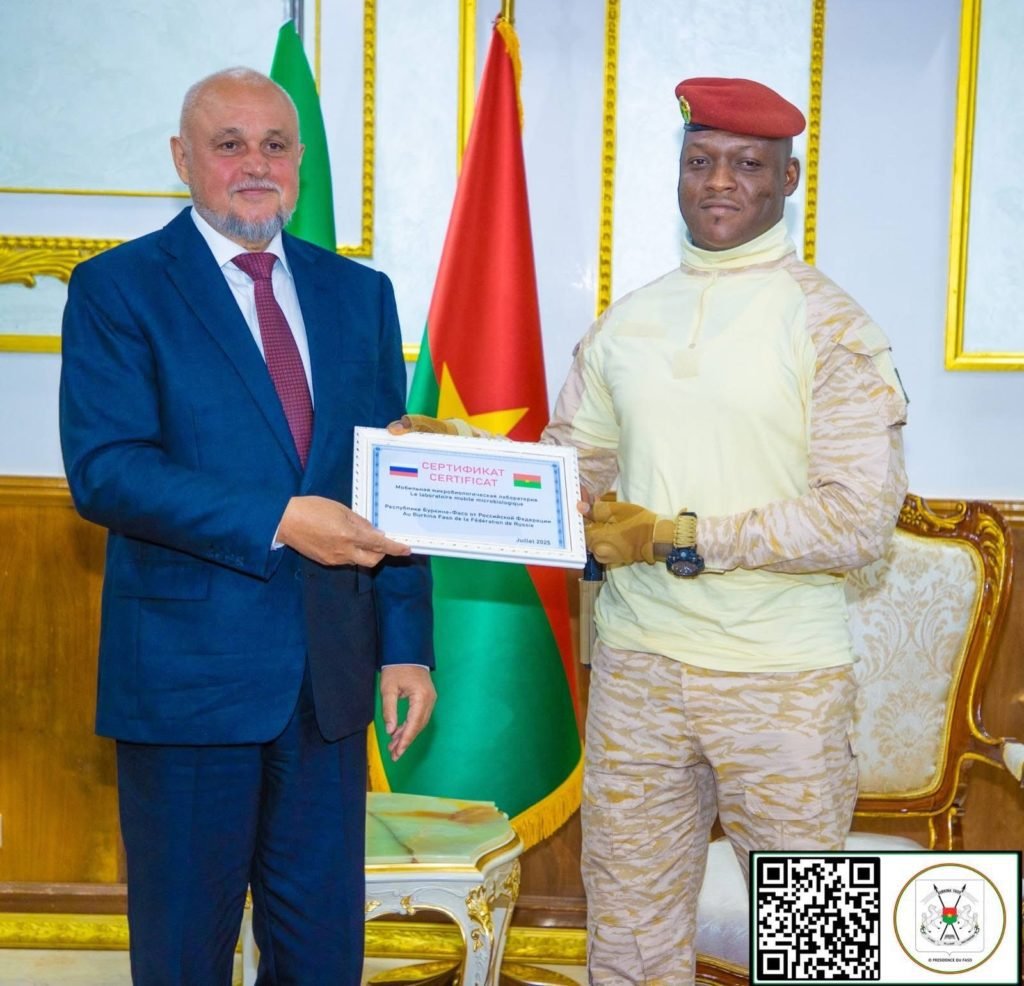 Au cours de l’audience, la délégation russe a remis au Président du Faso un certificat d’un laboratoire mobile microbiologique que la Russie entend déployer au Burkina Faso les mois à venir pour renforcer la coopération dans le secteur de la recherche.