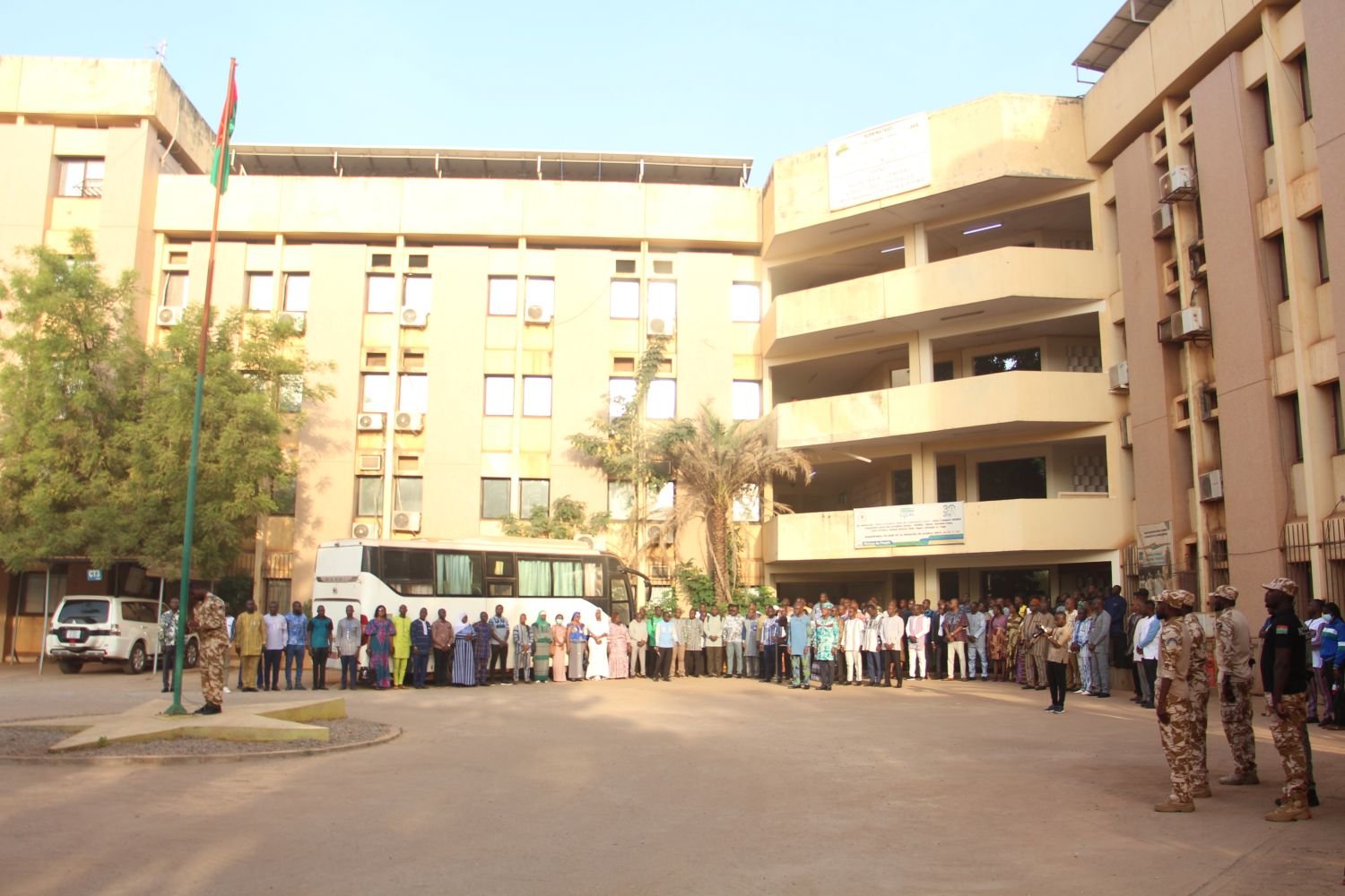 Renouvelant leur esprit d’appartenance à la Nation, les agents des deux ministères ont entonné en chœur l’hymne national pour monter le drapeau national. Après cette solennité, le ministre chargé du Commerce a souligné que la tradition qu’ils ont consacrée est particulière en ce sens qu’il s’agit de la première montée des couleurs de la nouvelle année 2026. A cet égard, il a souhaité à l’ensemble des agents ses vœux les meilleurs pour cette nouvelle année, tout en insistant sur la santé et la paix.