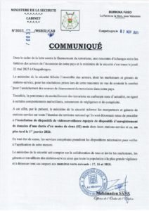 A cet effet, par le présent, le ministère de la sécurité informe les marqueteurs et gérants de stations-service sur toute l’étendue du territoire national qu’ils sont désormais tenus de procéder à l’installation de dispositifs de vidéosurveillance équipée de dispositifs d’enregistrement de données d’une durée d’au moins de deux (02) mois dans leurs stations-service et ce, au plus tard le 1er janvier 2026.