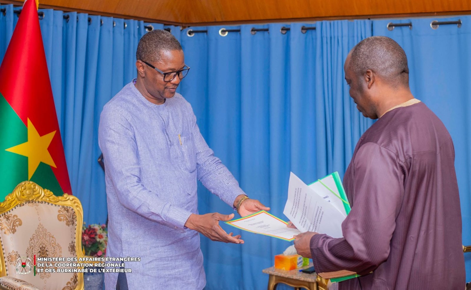 Le diplomate sénégalais est venu remettre au Chef de la diplomatie burkinabè, les Copies figurées des Lettres l’accréditant auprès de notre pays.