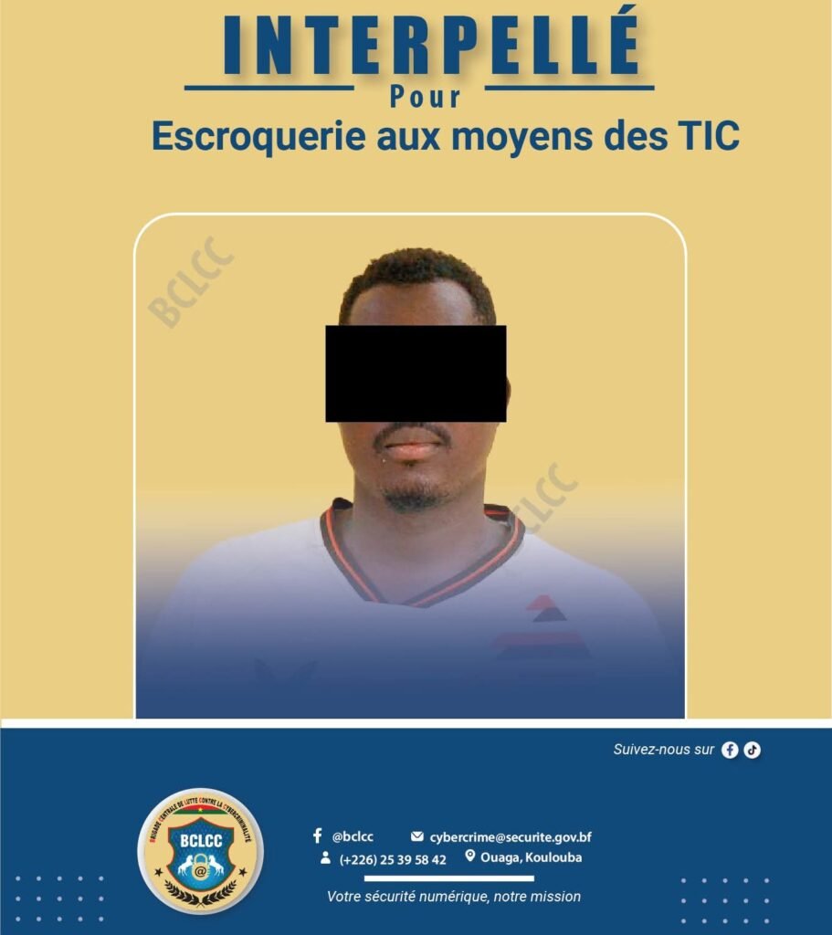 La Brigade Centrale de Lutte Contre la Cybercriminalité (BCLCC) a interpellé un individu de 30 ans, étudiant à Ouagadougou, soupçonné d’escroquerie en ligne. T.S utilisait deux faux comptes Facebook pour proposer des articles à la vente, notamment des motos et des parcelles, et se présentait comme un intermédiaire entre vendeurs et acheteurs.
