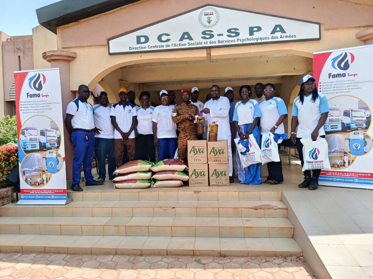 L’activité humanitaire, qui s’est tenue a la Direction Centrale de l’Action Sociale et des Services Psychologiques des Armées (DCASSPA) au sein du camp Sangoulé Lamizana, a permis la distribution de 5 tonnes de riz en sacs de 25 kg et de 40 cartons de bidons d’huile. Une initiative saluée pour sa portée sociale et son symbolisme fort dans le contexte actuel du pays.