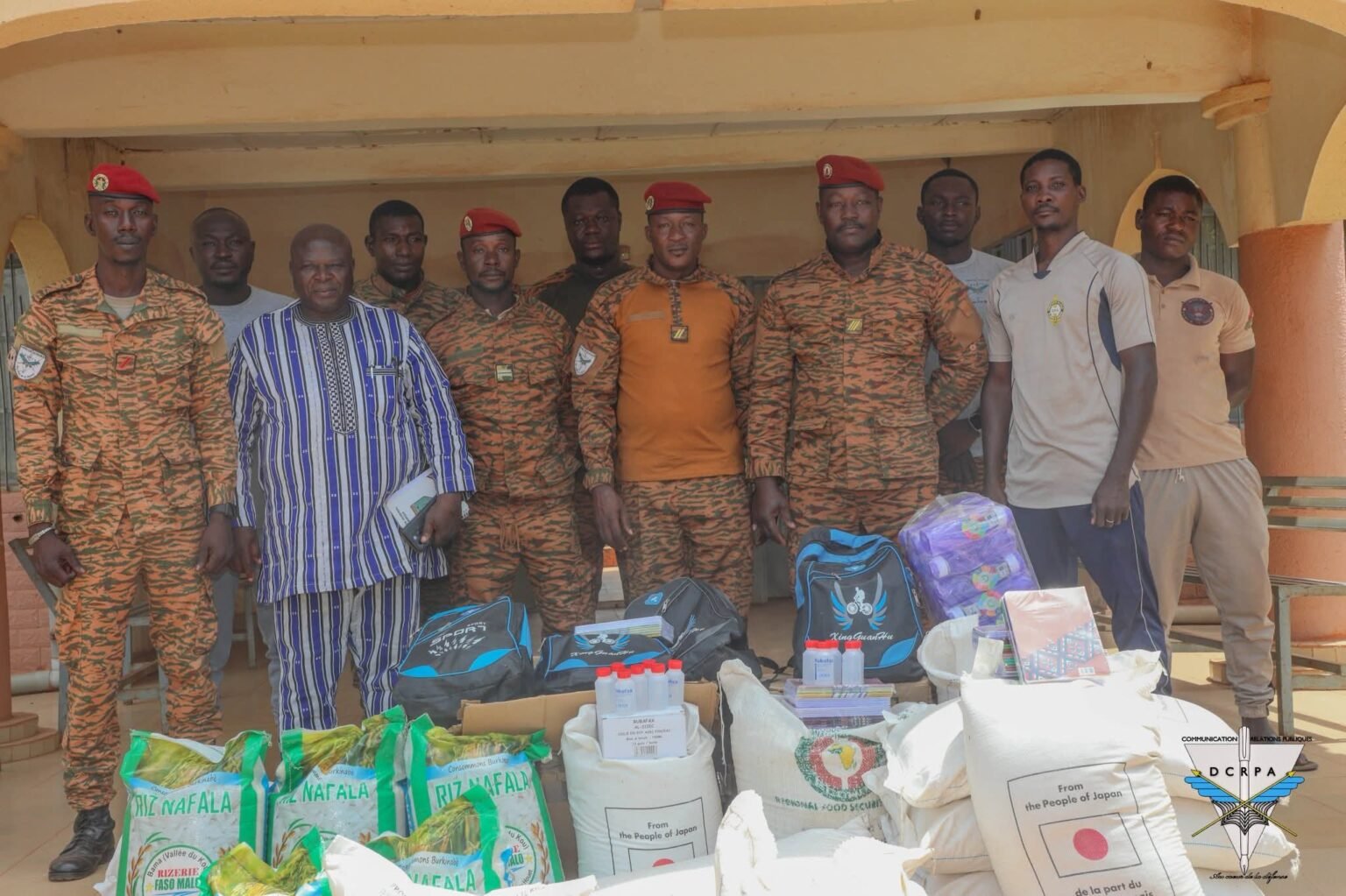 Le 9 octobre 2025, le Sergent YAMEOGO Fulgence, alias Fulpa, en service à la Direction de la Communication et des Relations Publiques des Armées (DCRPA) et membre de l’orchestre des Forces Armées Nationales, a procédé à la remise officielle d’un don à la Direction Centrale de l’Action Sociale et des Services Psychologiques des Armées (DCAS-SPA). Cette action s’inscrit dans le cadre de son initiative « Un concert pour 100 scolarités », destinée à soutenir les familles des FDS tombés au front. Le don, composé de plus de 3 tonnes de vivres (68 sacs de riz et de maïs), de kits scolaires et d’une enveloppe financière de 150 000 F CFA, a été réceptionné par le Lieutenant SANKARA Boureima, représentant la DCAS-SPA.